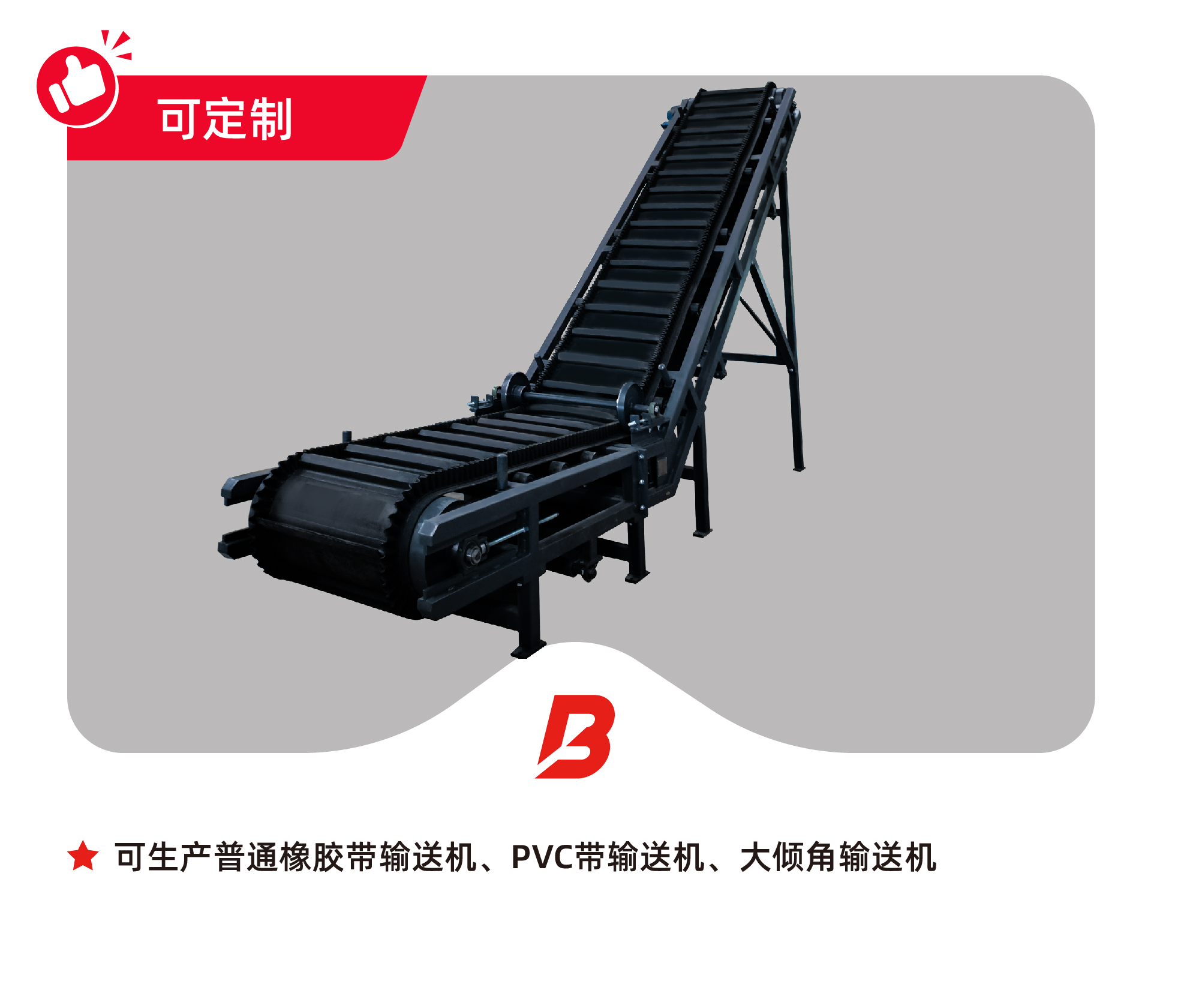 我司專業生產各類皮帶輸送設備,包括普通橡膠帶輸送機、PVC帶輸送機、大傾角輸送機等,并可依據客戶實際需求或提供圖紙進行定制化設計與生產,滿足多樣化物料輸送場景。